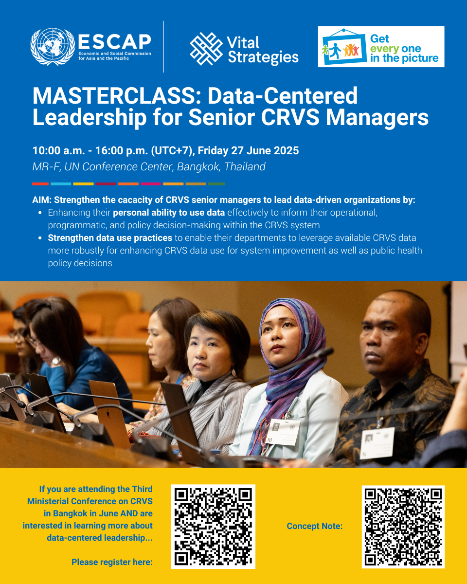 The objective of the masterclass is to strengthen the capacity of CRVS senior managers to lead data-driven organizations by: