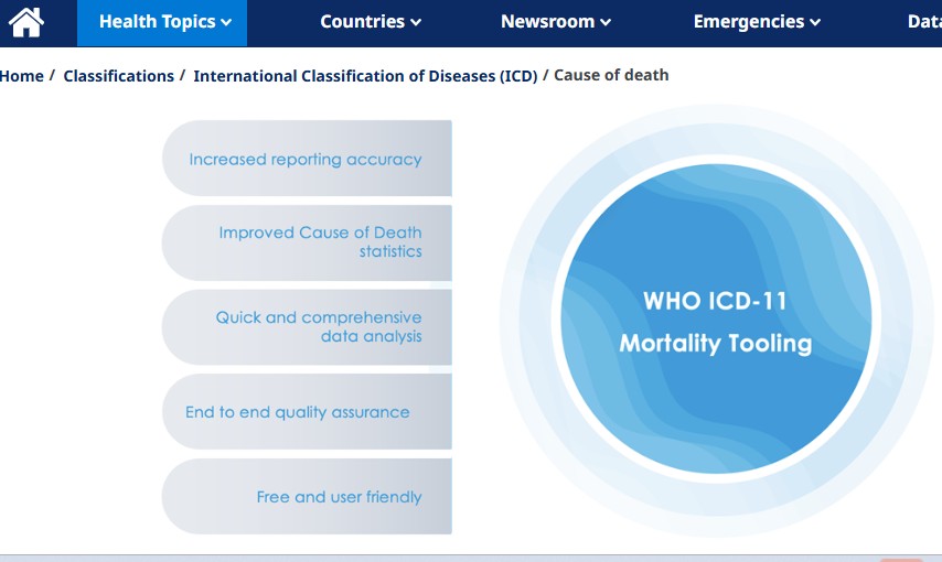 WHO lists here ICD guidelines and tools for cause of death recording and reporting